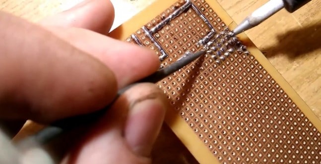 Otra opción que a mi personal no me gusta es usar una baquelita perforada con la que evitaremos el decapado y taladrado pero por contra tendremos que hacer las conexiones soldando los cables y estañado para unir unos componentes con otros.