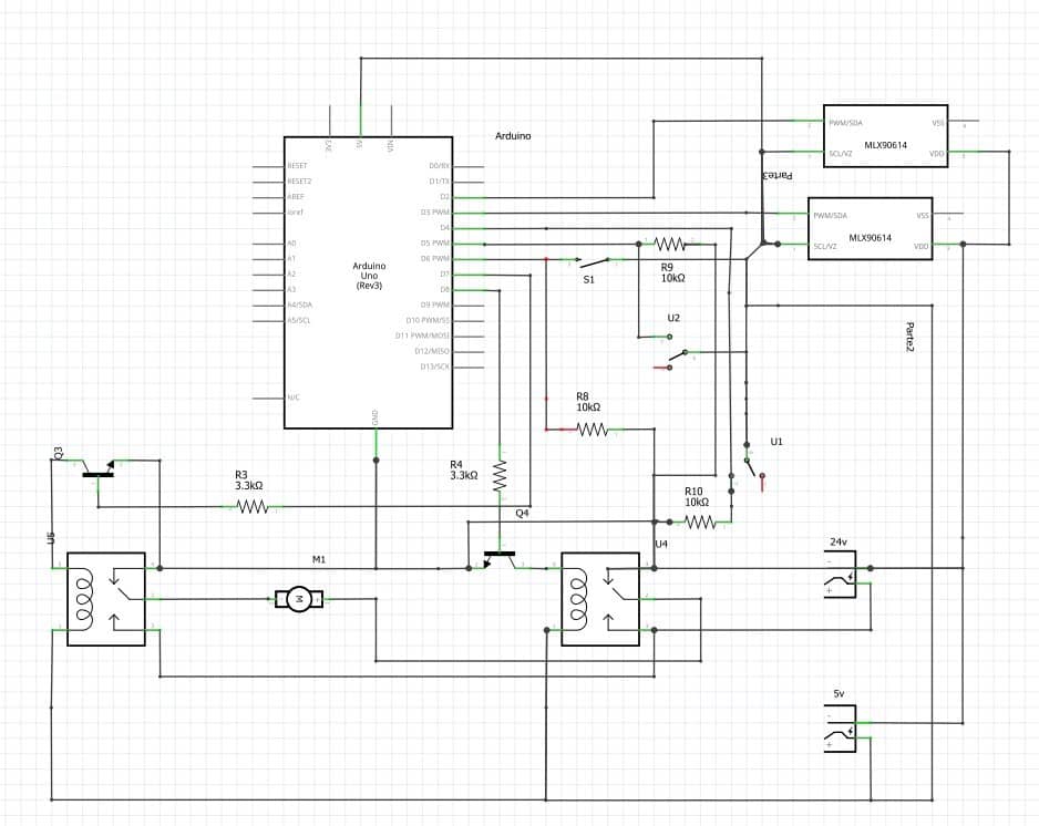 El circuito electrónico dispondrá unos conectores para dos detectores, cuando algún detector de entrada o de salida detecte a una persona el motor con reductora girará en sentido de abrir hasta que las puertas lleguen al final de su recorrido, en ese momento tocarán un final de carrera y se detendrán.