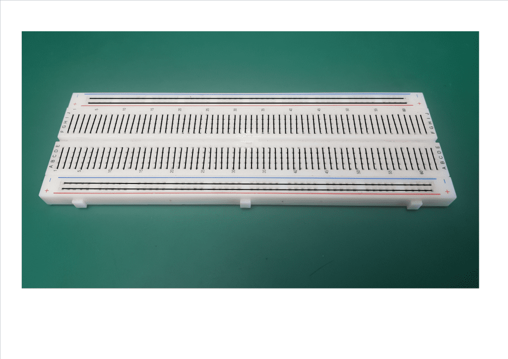 Y en este punto entra una herramienta super usada y conocida que es la protoboard o placa de prototipos, es simplemente una pieza de plástico con una serie de agujeritos colocados en línea en la que en su interior tienen unas chapitas metálicas de modo que están pensadas por su tamaño y forma para introducir patillas de componentes.