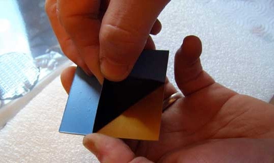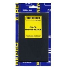 Después recortaremos el papel transparente y cortaremos a medida nuestra baquelita, ahora si ha de ser fotosensible ya que vamos a usar el medio de insolado, este tipo de baquelitas llevan unas pegatinas en ambas caras y una imprimación de un material fotosensible.