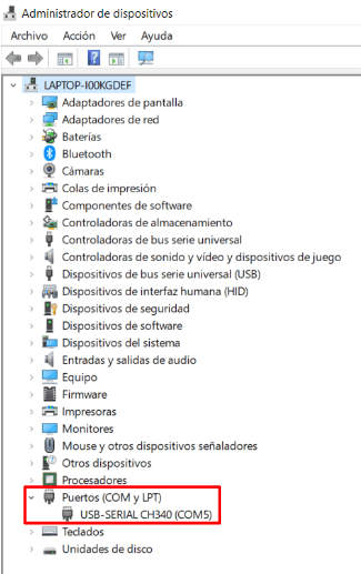 Una vez instalado cuando conectemos la ESP32CAM+ESP32CAM-MB podremos ver en el administrador de dispositivos de windows en que puerto tenemos conectado la ESP32CAM