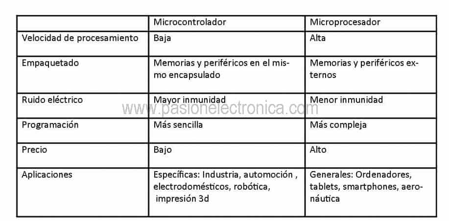 Seguro que te suena más la palabra microprocesador. Lo puedes encontrar en los ordenadores, tablets y smartphones, pues bien las diferencias básicas entre un microcontrolador y un microprocesador son las siguientes:
